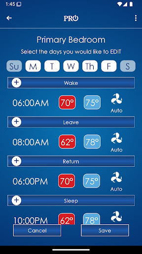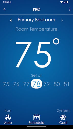 Save money, energy and peace of mind. The PRO1 Connect app allows users to operate their thermostat from anywhere. The large characters, setpoint slider, intuitive scheduling, and dynamic fan and system buttons make managing comfort fun and convenient.