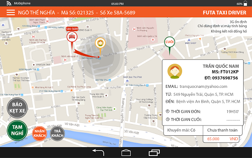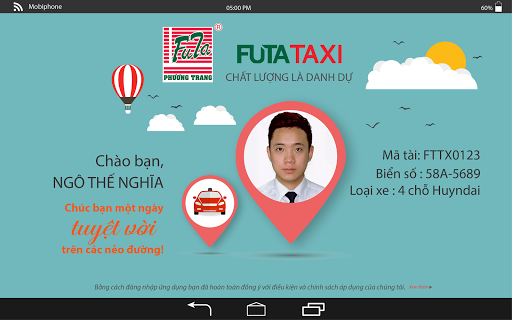 FUTA TAXI DRIVER là một ứng dụng hỗ trợ Tài xế Taxi trong việc nhận tín hiệu yêu cầu đặt xe từ khách hàng, các chức năng chính của ứng dụng FUTA TAXI DRIVER là nhận yêu cầu đặt xe từ khách hàng, xác nhận được vị trí của khách hàng , tính cước phí từ điểm đón và điểm đến, thanh toán tiền bằng nhiều hình thức. Ứng dụng do đội ngũ FUTA phát triển, ngôn ngữ tiếng Việt, FUTA TAXI DRIVER