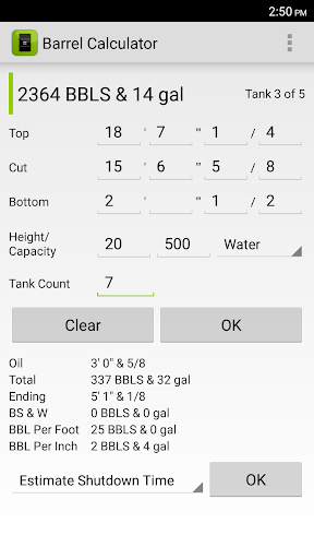 This app is for production pumping. It’s meant to precisely calculate volumes of water or oil to be taken out of oil field production tanks.