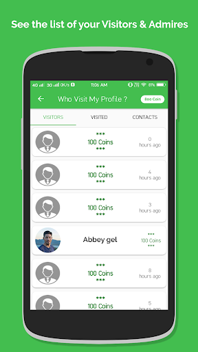 Have you been curious, all the time to know, Who visited your Profile and when did they visit your profile, to check out your status or profile picture. If you always wonder - Who was the visitor, Stalker or an admirer? Whats Tracker for WhatsApp - Online Usage Tracker for WhatsApp is a very useful app that tells you how much time you have spent on WhatsApp and any other installed app of your device.so using this app you can track usage of any app and can save your Quality Time. You can monitor all of your installed application usage details by using Application Usage Monitor. The online tracker shows your daily WhatsApp Use and your last Online time for WhatsApp. It also lets you know how much time you use your application. Than Whats Tracker: Who Viewed My Profile is the app you are looking for. It's the best and free platform to scan and track your profile visitors instantly and precisely. Whats Tracker: Who Viewed My Profile scans your profile and gives you instant information about all the visitors with the time of their visits. You can also check out the profiles visited by you with all your Contacts in one place. Whats Tracker Featurette - ★Check out your profile visitors ★View time of all their visits ★Check out the profiles visited by you ★View all of your Contacts ★No GPS required Should you have any questions or need help, email us! Disclaimer: This app is not associated in any way with WhatsApp Inc. This is a third party tool.