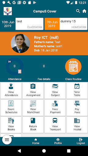 3. Push Notification to Home work and Class work.