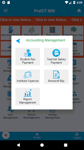 The Prabha G IMS app, is an all in one Institute Management System app that links the Institute, Teacher and Student together. The app has separate accounts for each user. The admin account allows the administrators to manage the institute, staff and students. It registers, monitors, tracks and display’s attendance of both teachers and students.The app provides salary information to staff and exam information to students. It allows students to check their fee status and study materials uploaded by their teachers. The app can be used by parents also. It keeps them, teachers and students informed through its SMS feature. Students that haven’t completed fees are sent a notification via SMS. The app has an added feature that allows users to print system reports via a wireless printer.