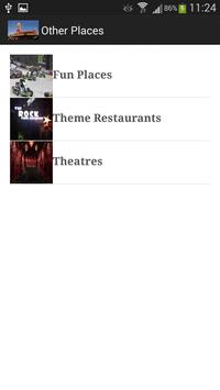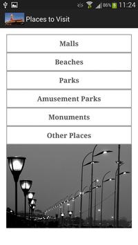 It gives the list of hotels, malls, beaches, amusement parks, monuments,parks,theatres,resorts,theme restaurants,fun places and consulates.