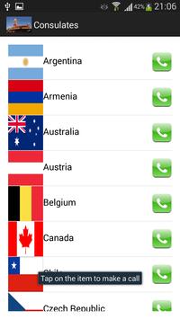 A calling feature is added to facilitate calling of emergency numbers and consulates.
