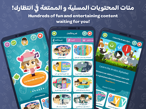 Our APP is packed with great educational content that will make your children laugh and smile while teaching them alphabet, colors, shapes, names of animals, fruits, vegetables and much more… in Arabic, English and even French.