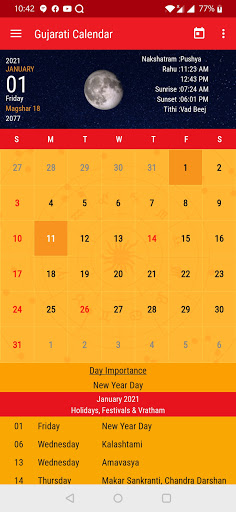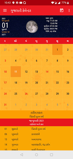 Gujarati calendar app includes:
