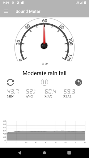 The value of sound meter is not as precise as an actual Sound Pressure Level Meter (SPL meter) sound meter, this is due to most device's microphone are aligned to the human voice. To fix this, use an actual sound meter or Sound Pressure Level meter (SPL meter) to adjust decibels error as close as possible before use. If you didn't own an actual Sound Pressure Level meter (SPL meter), go to a very quiet place where sound cannot hear and adjust the reading value to 20~30dB.