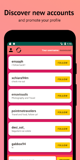 You can promote your account easily and quickly, discover new profiles, become popular and boost your account.