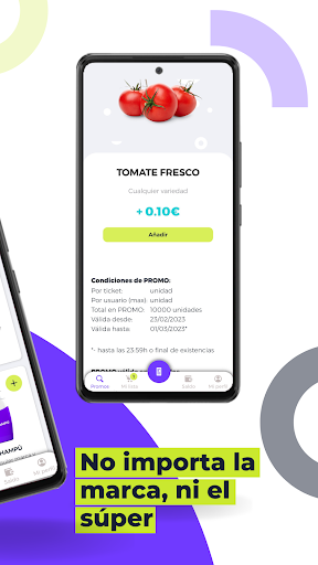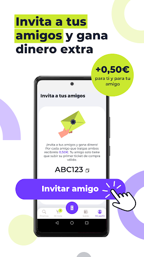 Bilang karagdagan, ang pagrekomenda sa amin ay makakatulong sa iyo na kumita ng labis na pera.Anyayahan ang iyong mga kaibigan at para sa bawat kaibigan na dinadala mo pareho ay makakatanggap ka ng € 0.50 mula sa cashback.Kailangang ilagay lamang ng iyong kaibigan ang iyong code at i -upload ang iyong unang wastong tiket sa pagbili sa app.Iyon ay simple! Sa Espanya: Carrefour, Mercadona, Araw, Supercor, Eroski, Lidl, Pag -iimpok, atbp. Ang application tuwing Huwebes.