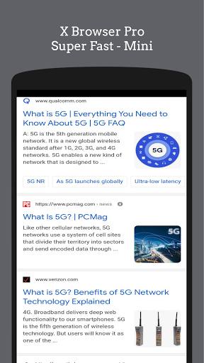 x This mini browser is ideal for use on fast network connections such as Wi-Fi, 2G, Edge, 3G, 4G and 5G. This is designed to make your Android device more effective and easy to connect networks!