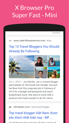 X Browser: Super Fast Pro - New, Free, Mini is super fast and powerful is a very fast browser and is suitable for Android phones and tablets. This mini browser gives users fast and interesting internet browsing on social networks, websites, opening photos, watching videos, and downloading and others.