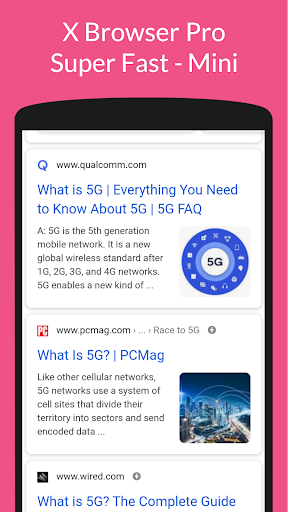 x This mini browser is ideal for use on fast network connections such as Wi-Fi, 2G, Edge, 3G, 4G and 5G. This is designed to make your Android device more effective and easy to connect networks!