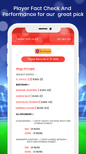 Dream Team 11 - Best Fantasy Cricket Team Playing 11 Prediction App