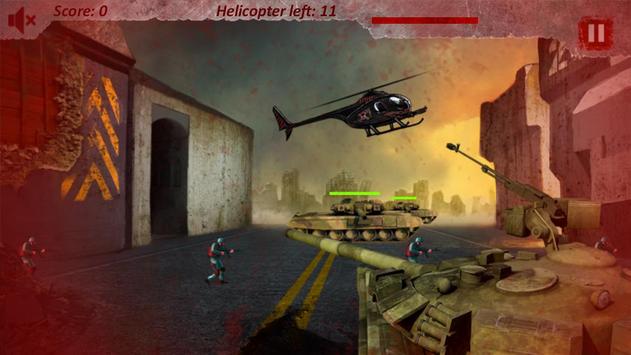 There are three types of enemies. Tanks, men and choppers. First two are coming from left to right, and shoot faster and faster as game level up. Choppers don’t shoot. They are heading to their base and calling more enemies. If twelve choppers pass on right side, game is over. There are two weapons. Cannon and submachine gun. Cannon is for enemies on the ground, and submachine gun for choppers. They switch automatically when player aim. Tap on enemies to shoot them.