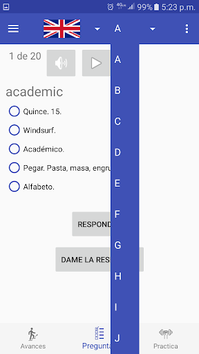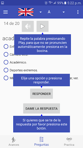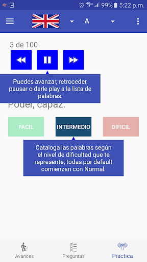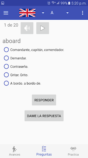 Puedes usar su modulo de entrenamiento para escuchar el listado de palabras en ingles y su significado en español mientras corres, manejas o haces cualquier actividad cotidiana.