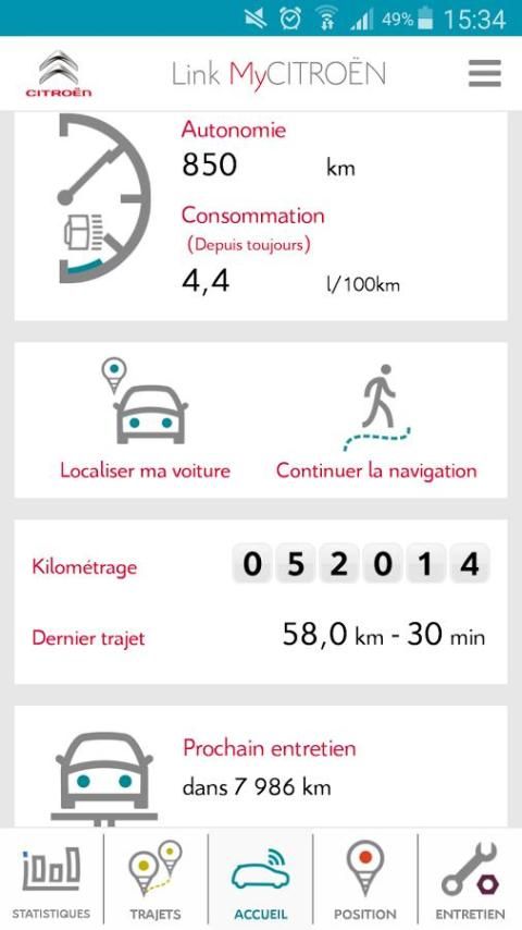 The application allows you to optimize your consumption, you do not lose your revisions, and helps you quickly find your C4 Picasso and C4 Cactus parked.