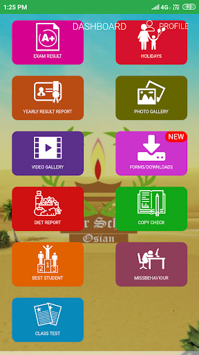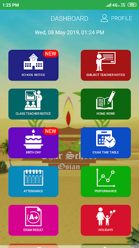 Parents can also view attendance, home work exam time table with syllabus and all other necessary information regarding their child.