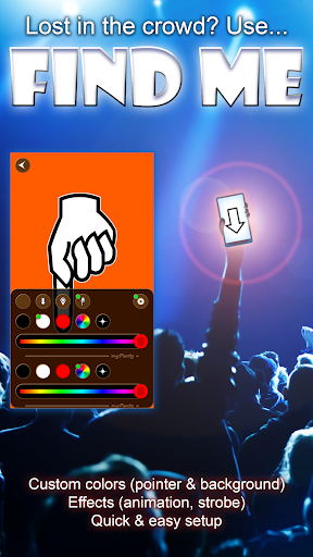 Are you at a concert and can not find friends? You are in touch but you can not tell them where in the crowd are you? Select the "Find Me" function. Set your pattern, add colors, animation and strobe effect and ... just reach out with your phone high above your head. Your friends will definitely see where you are.