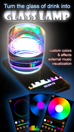 Convert a glass with a drink, a bottle or a plastic cup into a very attractive glowing lamp. Choose your pattern and colors, put the phone on the table and carefully, so as not to damage the screen, put a glass on it and enjoy the amazing effect of the afterglow. If you're in the club, the disco, or simply listening to loud music at home, add also music visualization effect.