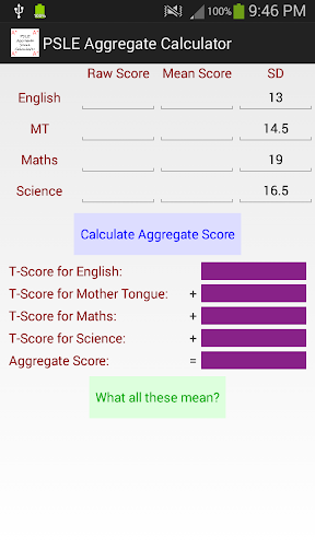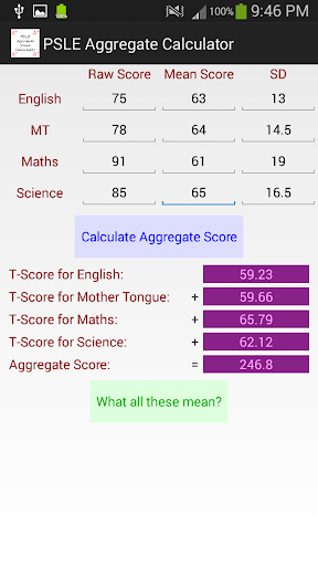 Calculates student's aggregate score based on raw score, average score and standard deviation. Able to give a rough estimate of student's PSLE score from SA and prelim results.