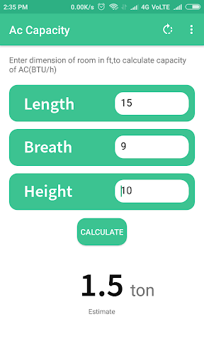 AC Calculator is very user friendly,simple to use, you have to enter height, length and