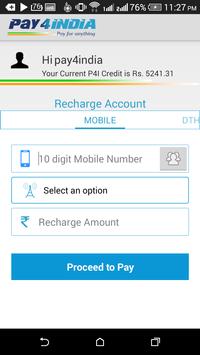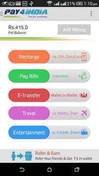 Pay4India - Offers mobile recharges, bill payments, entertainment, travel tickets and through mobile application customised for your phone & tablets. You can easily manage all things in one application in less than 10 seconds. Secure. Safe. Fast.