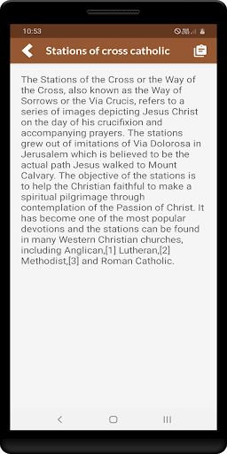The Stations of the Cross, are a way to pray and meditate on Christ's sacrifice for us. There are in total fourteen stations from the time he was condemned to his burial. This devotion has been long encouraged by the church and is especially useful during Lent and Good Friday.
