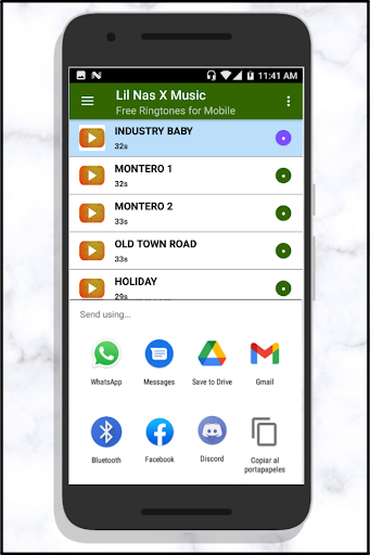 Share the app "Lil Nas X Ringtones" with family and friends on social networks such as Facebook, WhatsApp, Twitter, Instagram.
