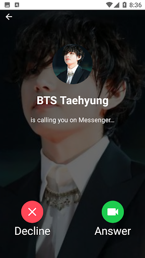 6. Wait 2 seconds then the fake call prank with BTS Taehyung will run.