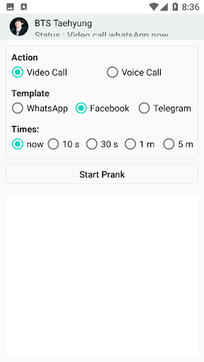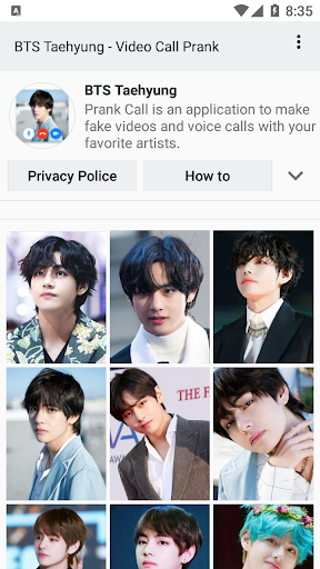 With this application you can prank your friends as if you were on the phone of your favorite artist, BTS Taehyung. Your friends must think that you have BTS Taehyung's phone number. You can also show off with your friends by taking screenshots during a video call and then sharing them on your social media such as Facebook, Instagram, WhatsApp, Twitter and others.