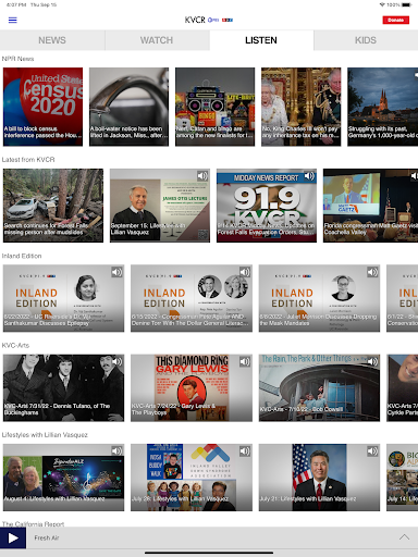 • Listen to the live stream from EMPIRE | KVCR even while traveling.