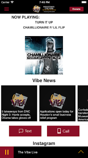 You can send voice and text messages to on-air personalities, as well as explore Vibe content including Breaking and Celebrity News, Upcoming Concerts and Events, Ways to become a Vibe Member and more! You can even set the app alarm clock to wake you up to The Vibe!