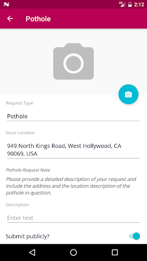 The City of West Hollywood Official App connects you directly with West Hollywood City Hall. There is a function for service requests (potholes, noise complaints, dangerous conditions, etc.), which will be instantly submitted to the correct administrator in the appropriate division. In addition, there are features to connect you to City of West Hollywood news, programs, and resources!