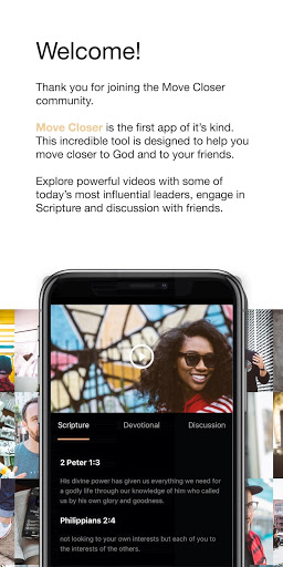 Topics on Move Closer are broken into albums. Each album features five tracks, including Scripture, devotional content, and discussion questions. Each album includes a meetup guide to help guide a weekly meeting with friends. Complete albums with friends and then select another album or replay with new friends! Connect with your church or ministry to immediately access a list of users from your church on the app. All of this is done to help you move closer to God and friends as you follow Jesus together.