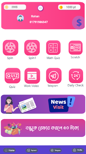 With our application, you can easily earn good money through video, spin, math, and referrals.