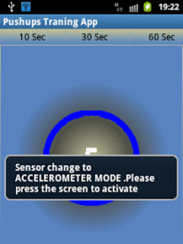 • Touch mode when you have to touch the screen to count pushups.