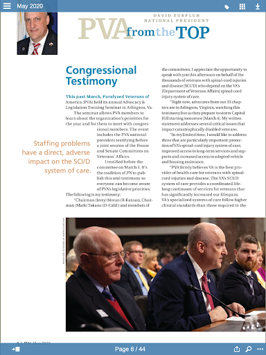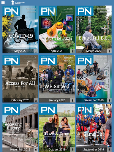 The PN Digital Magazine app delivers a digital version of our print publication with articles of interest to veterans and others with spinal-cord injury/disease. Stay up to date on news, health, SCI research, travel, people profiles, lifestyle and more. Published by Paralyzed Veterans of America (PVA). PVA is a non-profit organization dedicated to serving its members – veterans who have a spinal cord injury or dysfunction. PVA addresses all aspects of life -- health-care, education, research, advocacy and sports for its members and all Americans with a spinal cord dysfunction.