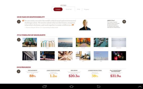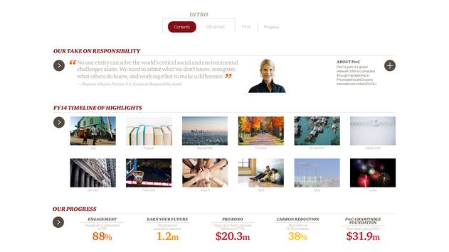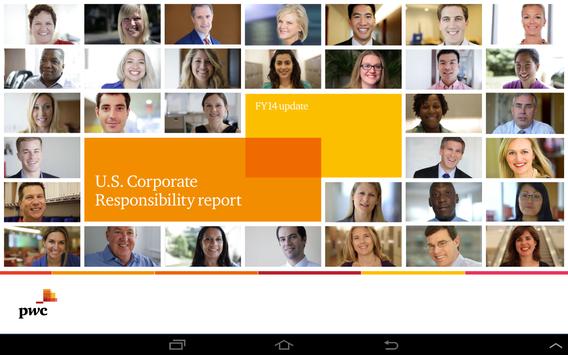 The app contains an update on our progress during FY14. Our latest comprehensive report is available at www.pwc.com/us/crreport