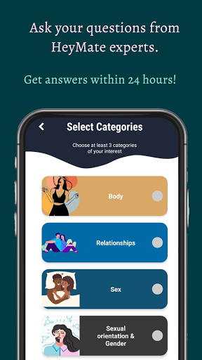 HeyMate is your go-to friend for any of your questions about love, sex, relationships, and mental health.