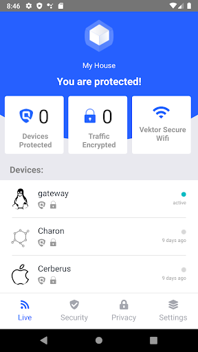 The Vektor Security app is the companion management app for the Q-Branch Labs Vektor home cybersecurity and privacy protection device.