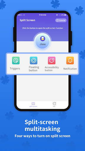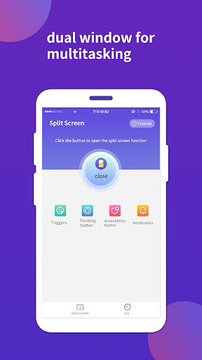 • Turn on the split screen mode of Split Multitasking Dual Screen to experience the dual views mode.