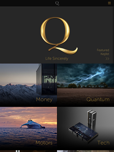 Dergi yayıncılığı ile dijital yayıncılığı birleştiren Q; Money, Quantum, Motors, Tech, Queen, Journey, Gourmet, Qulture, Nature ve Déclenché ile yaşamlarınıza dokunuyor.