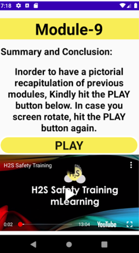 This course consists of 9 modules including Pictorial - Video Tutorial and a final test based on Multiple Choice Question (MCQ). Participants must pass this test, minimum scoring is 80%, upon successful completion participants may print their H2S Training e-Certificates.