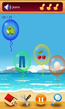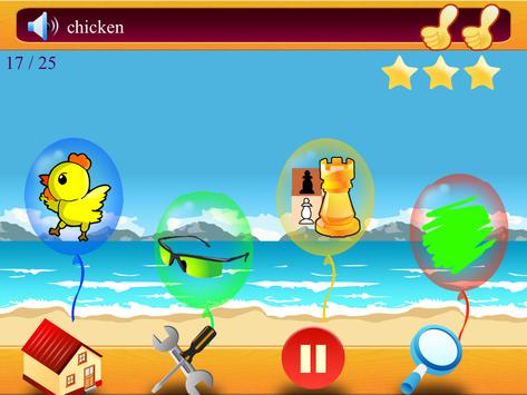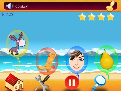 This game is created for my little girl Eleven, who is four and a half years old and learning English now. Actually we work together to design the game, and many ideas of the game come from her, like breaking the ballon, star and thumb rewarding, animals on the cover page. Additionally, she selects all the pictures for the words.