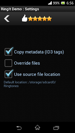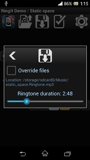 Ringit simplifies ringtone creation process on smartphones and tablets. Cut and loop audio files by your finger! Live preview is available all the time. Ringtones can be saved or set as default incoming call sound.