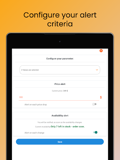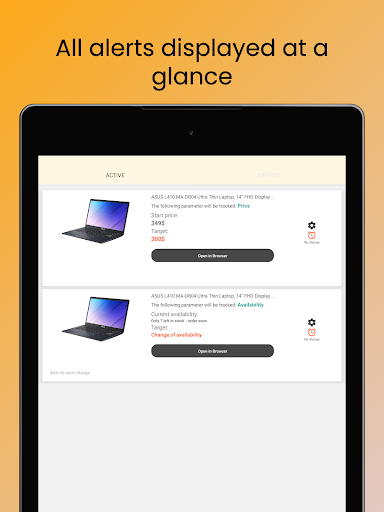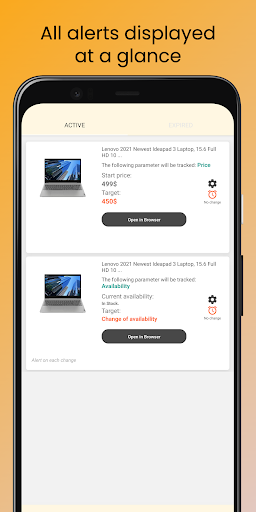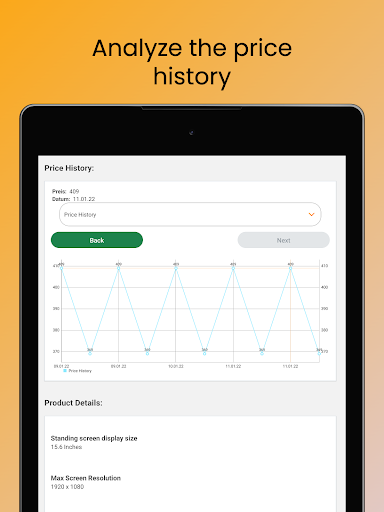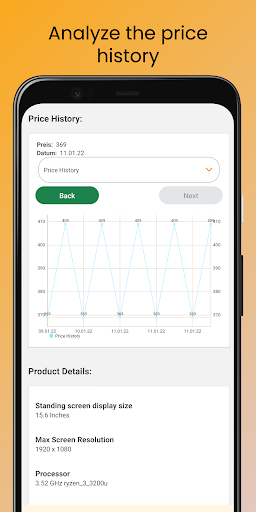 - Price alert: Configure your personal price alarm and always be up to date when the price of your product drops. View the historical price history and recognize trends in the price development early. So you always store at the lowest price and can save money