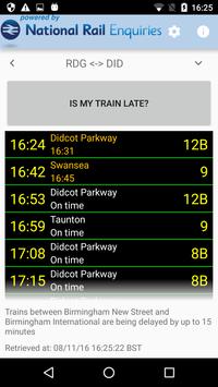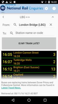 No need to go all the way to the station only to find out your train has been cancelled! Is My Train Late? gives you the same information that's displayed on the station platform display, using real-time data provided by National Rail Enquiries.