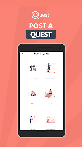 Quest is a request-based Peer-to-Peer platform where users can seek help from others for convenient, quick, cost-competitive gigs, and simultaneously offer their services through the app.
