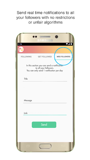 With a simple interface, content creators can send a real-time notification to their followers, let it be a video, live-stream or any type of content delivered directly to the follower's device as a push notification.