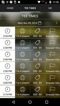 The Emerald Hills golf app includes custom tee time bookings with easy tap navigation and booking of tee times.